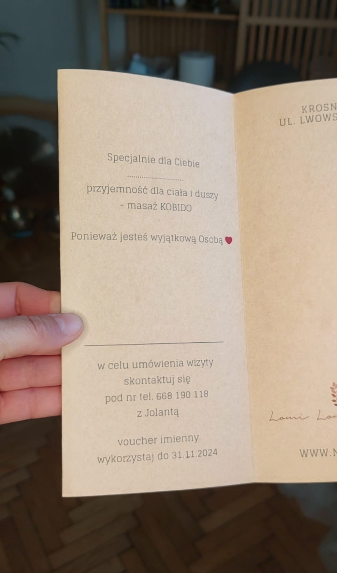 Przy finalizacji zakupu należy podać imię i nazwisko osoby obdarowanej. Więcej informacji o masażu na stronie www.namaja.pl